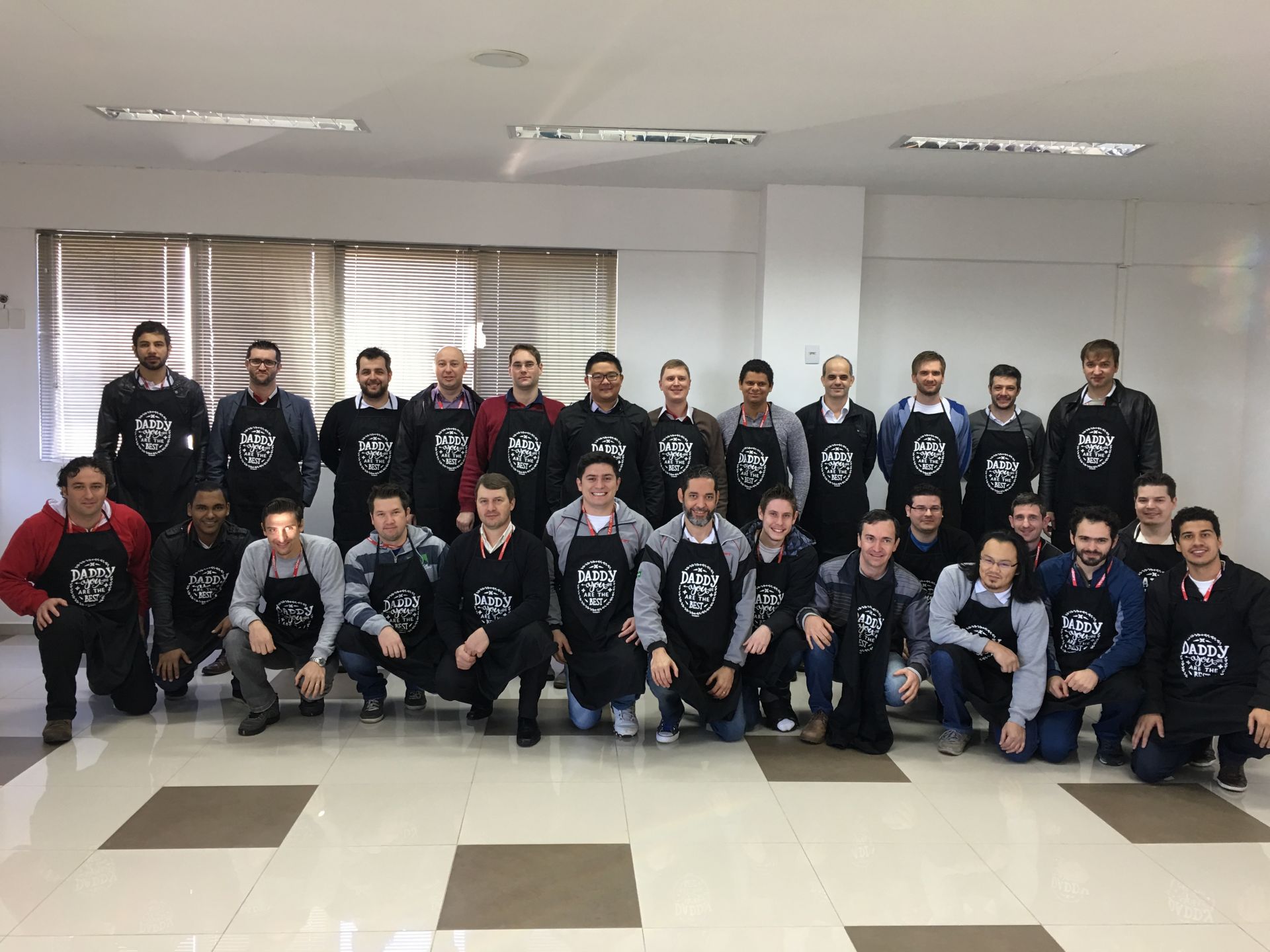 Antes da entrega da carta foi passado um vídeo sobre a paternidade (assista aqui) e realizado um momento de reflexão. Também foi oferecido um café colonial e, de presente, um avental de churrasco. O resultado foi lindo: um monte de marmanjos se desmanchando em lágrimas.